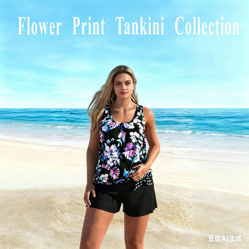 The vibrant orange floral print top features a flowy, racerback design that delivers superior bust support and full mobility, while the ruched black skirt with a drawstring detail cleverly conceals your midsection and hips, creating a flattering, tummy-control effect for all body types—especially curvy figures. The adjustable drawstring lets you customize the skirt length for the perfect fit, whether you’re swimming, strolling along the beach, or lounging by the pool.